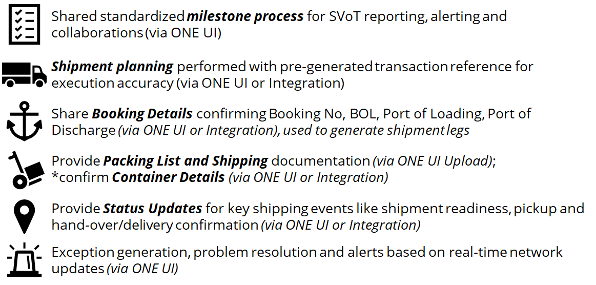 - Continuous availability of data for visibility and collaboration with supplier’s and LSP users